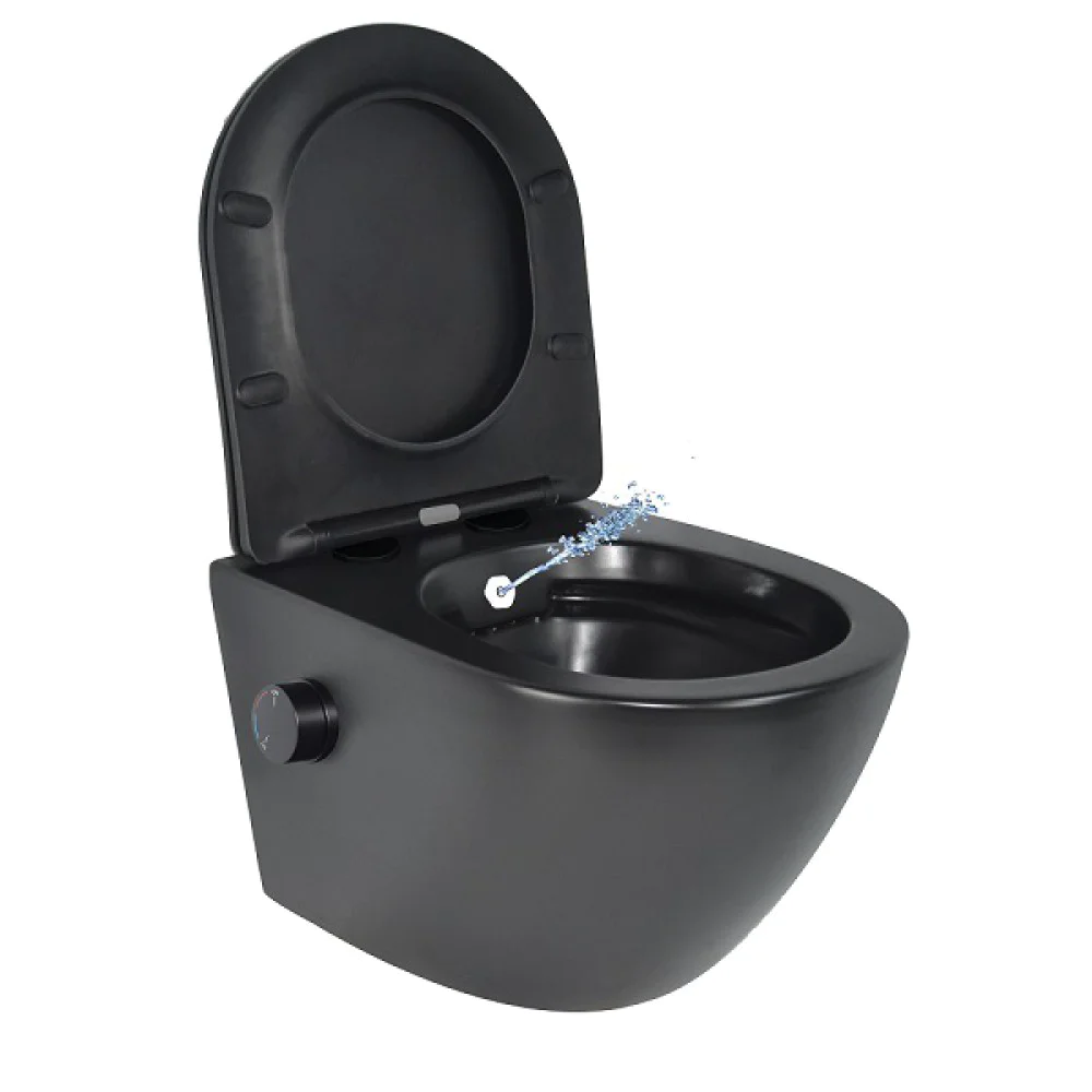 Oppio Aura WC-Douche Suspendu – Noir Mat – Inclus Abattant Softclose & Mitigeur Intégré