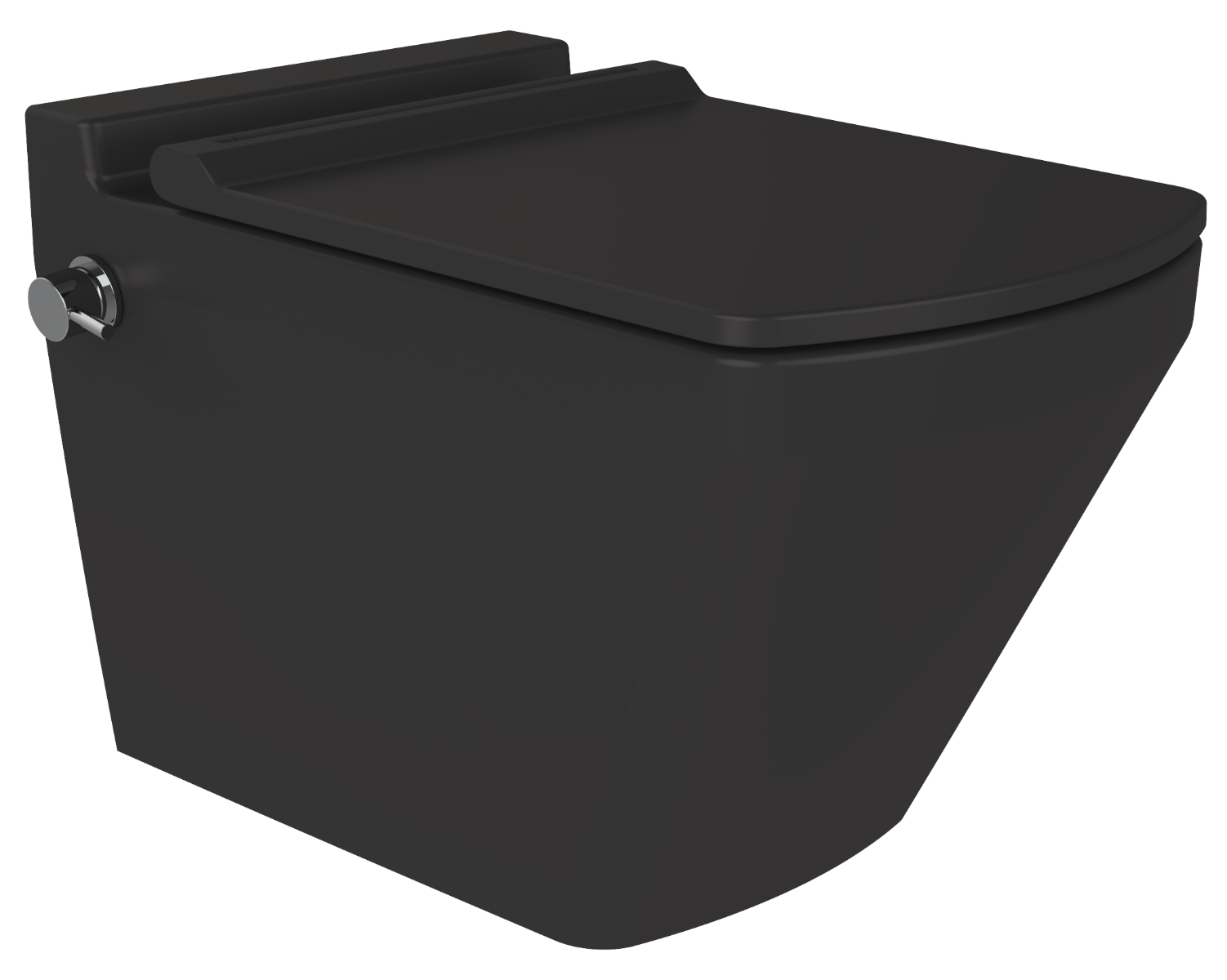 Het randloze (rimfree) ontwerp voorkomt vuilophoping en maakt schoonmaken eenvoudig. De matzwarte keramiekafwerking en het vierkante silhouet geven elke moderne badkamer een unieke, architectonische uitstraling.